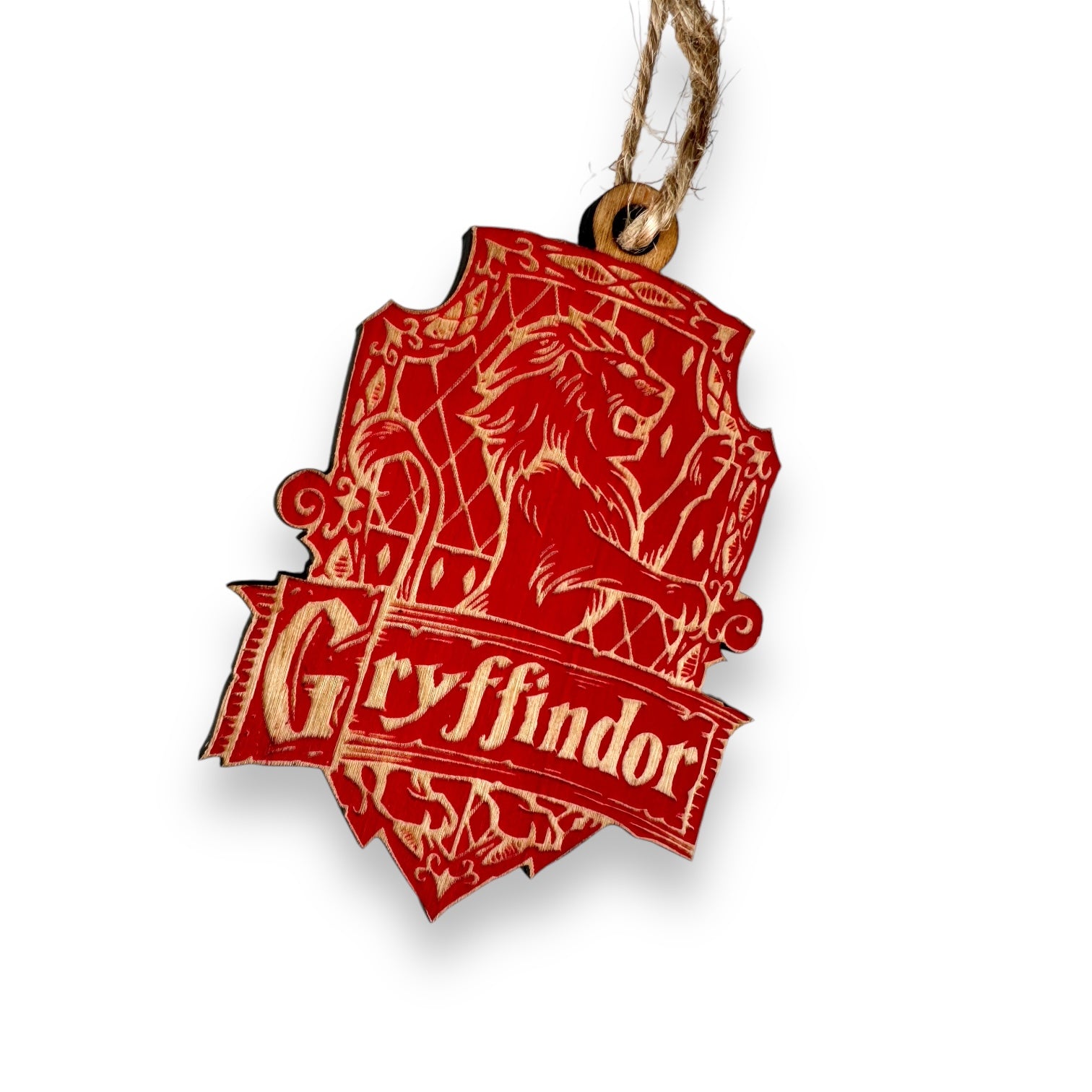 This beautifully crafted Gryffindor ornament is made from high-quality Baltic Birch wood. Laser-engraved with intricate details, it is hand-painted and sealed for a lasting finish. Perfect for Harry Potter fans and movie lovers, it adds a magical touch to any space or holiday decor. A thoughtful, one-of-a-kind gift for any Gryffindor or Wizarding World fan!