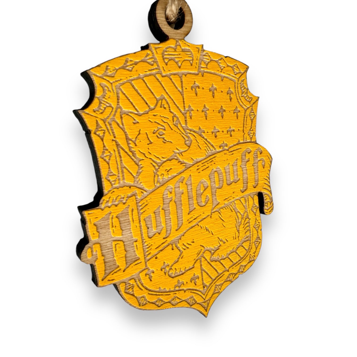 This beautifully crafted Ravenclaw ornament is made from high-quality Baltic Birch wood. Laser-engraved with intricate details, it is hand-painted and sealed for a lasting finish. Perfect for Harry Potter fans and movie lovers, it adds a magical touch to any space or holiday decor. A thoughtful, one-of-a-kind gift for any Hufflepuff or Wizarding World fan!