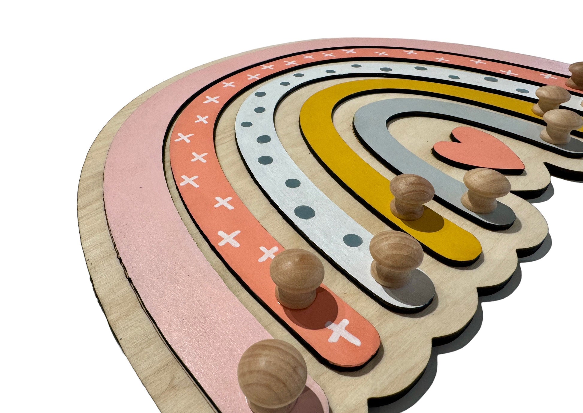 Looking for a stylish and functional way to hang your towels, blankets, baby clothes, and other accessories? Look no further than this beautiful Wall Hanger for Nursery! Handcrafted with care, this hanger features a charming design that's sure to add a touch of whimsy to your little one's space.